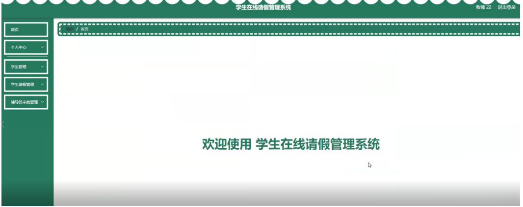 教师登录进入系统上可以对首页、个人中心、学生管理、学生请假管理、辅导员审批管理等进行相应操作,如图5-16所示。