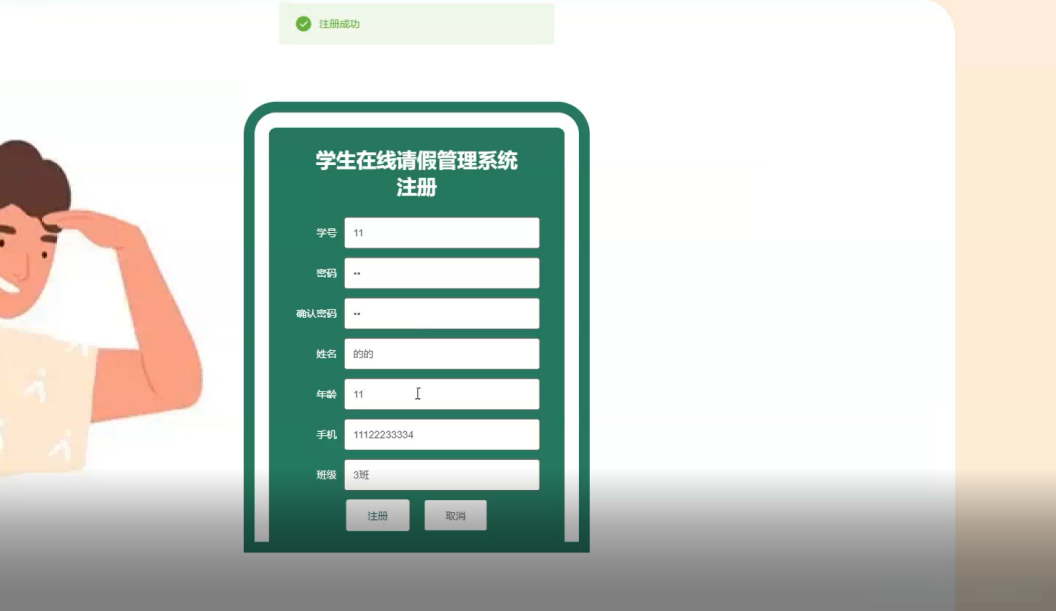 图5-6学生请假管理界面图