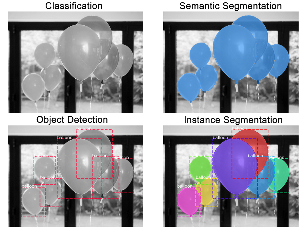 下面这张经典图片,简单明了地说明了实例分割与其他视觉三大任务的区别: