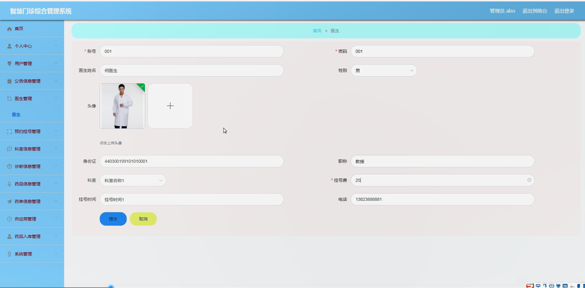 本研究旨在设计和开发一款功能全面、性能稳定、操作简便的智慧门诊综合管理系统。通过深入分析门诊服务的实际需求和业务流程,结合先进的信息技术和智能算法,构建一个能够满足用户、公告信息、医生、预约挂号等多方面需求的智慧门诊综合管理系统。同时,研究还将致力于解决系统的数据安全、隐私保护和用户体验等问题,提高系统的可靠性和扩展性。
