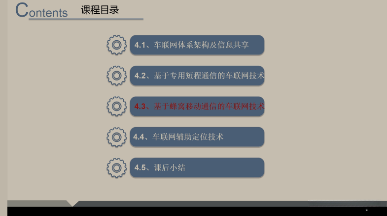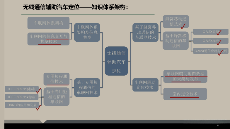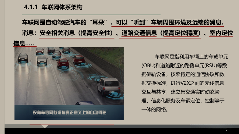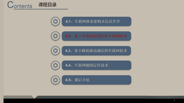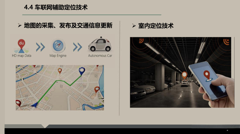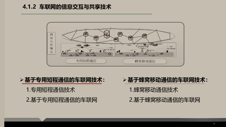 第四节无线通信辅助汽车定位 4.1车联网体系架构及信息共享 4.2基于专用短程通信的车联网技术 4.3基于蜂窝移动通信的车联网技术 4.4车联网辅助定位技术