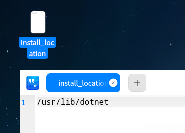 重要:这儿还需要添加一个定位文件,否则会在运行程序会失败,创建一个文本文件,文件命名为install_location,文件的内容写入:/usr/lib/dotnet。
