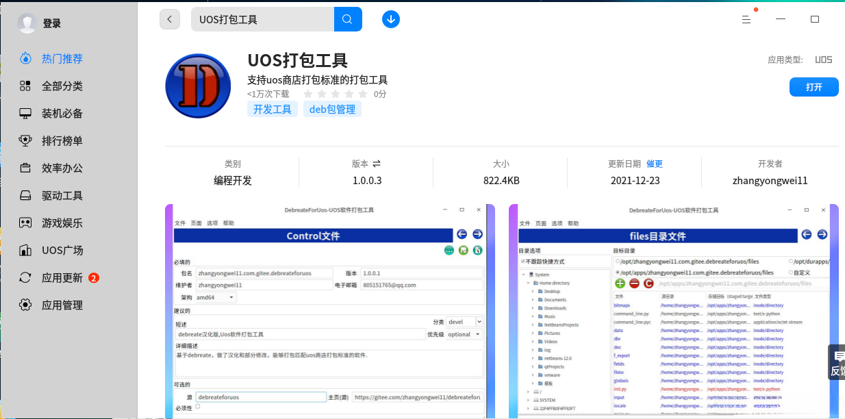 在统信系统的应用商店中找到打包工具——UOS打包工具: