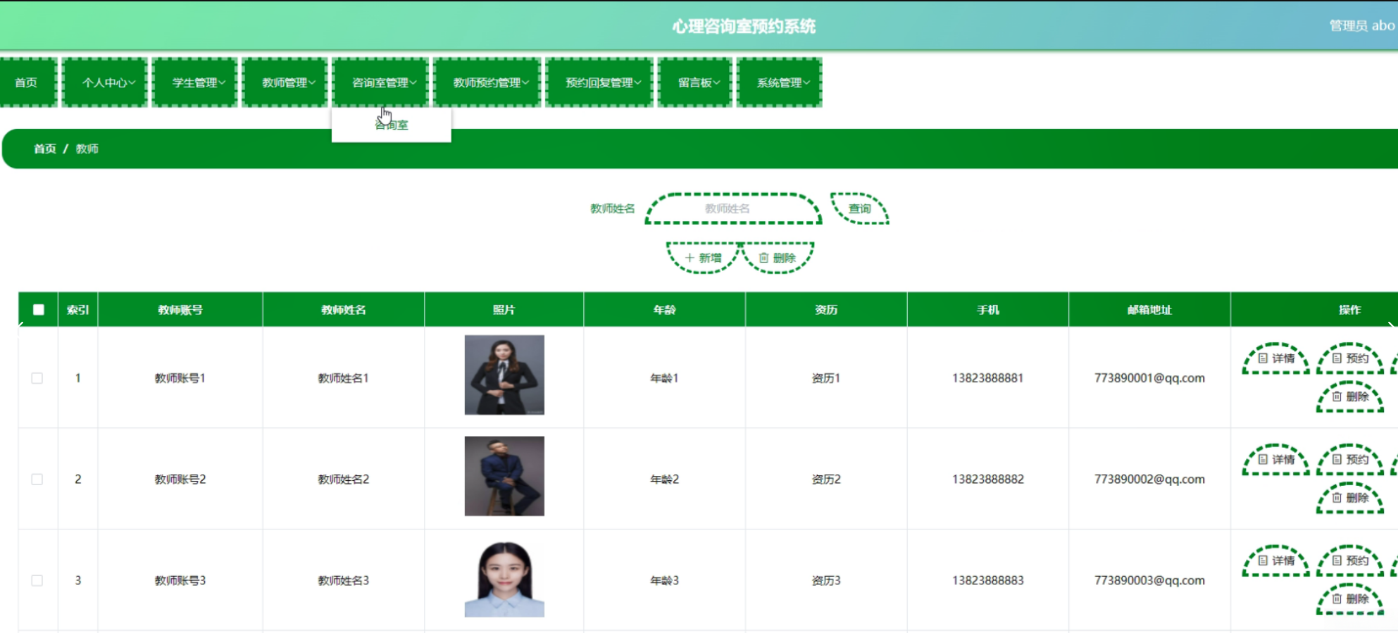 总体而言,构建一个针对青少年的心理咨询系统不仅能够专业提供心理支持并普及心理健康知识,并且能够提升服务质量的同时突破地域限制。通过采用html+css+javascript+vue技术栈以及包括java+springboot在内的多种开发技术等现代技术手段,在mysql5.7数据库的基础上结合eclipse或idea开发环境、tomcat7.0服务器以及jdk1.8运行环境中运用maven3.3.9项目管理工具等先进配置资源与基础设施的支持下,能够打造一个安全可靠且易于使用的青少年心理咨询平台,并非仅仅满足当前需求而是为未来的心理健康服务领域提供强有力的技术支撑基础。