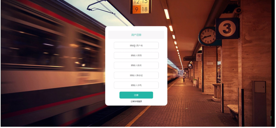 在用户的注册页面上,在线用户提供用户名、密码等基本身份信息及姓名、身份证号和手机号码等必要资料后即可完成注册流程(如图4-3所示)。在票务详情页面上,则可查看票种类型(即班次类型)、起点站(发车地点)、终点站(到达地点)、发车日期以及发车时间等核心要素,并根据需要选择座位类型(即座位区)、票数及票价等各项参数设置后再进行购票操作(如图4-4所示)。