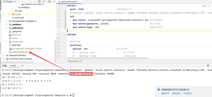 执行后,会在根目录下生成一个webrtc.keystore 的文件