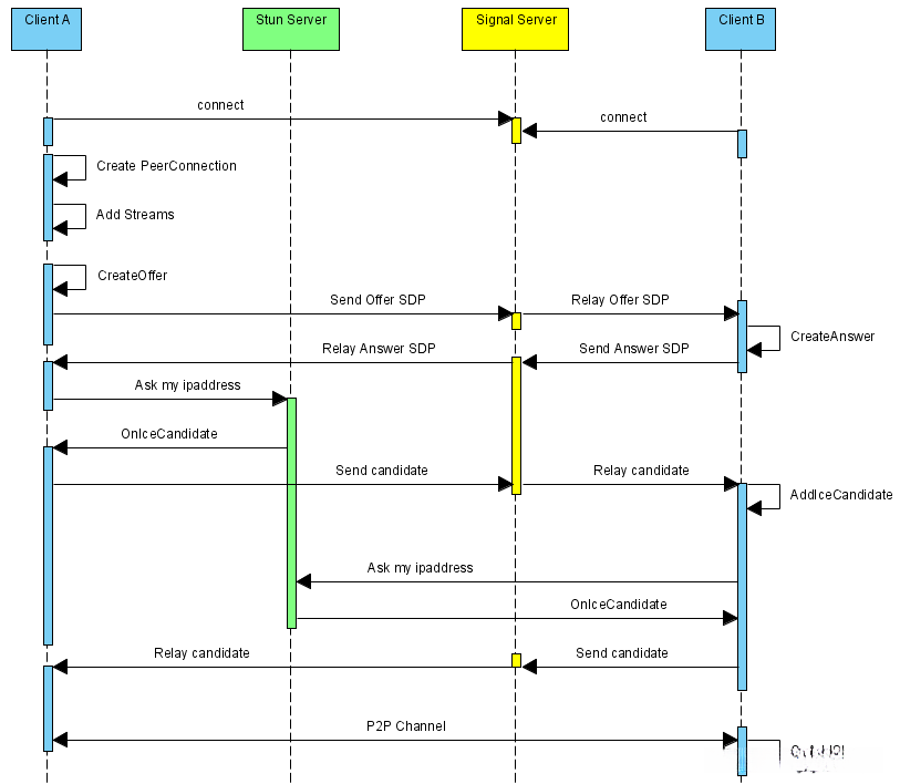 交换完Candidate信息后,P2P连接就建立好了。