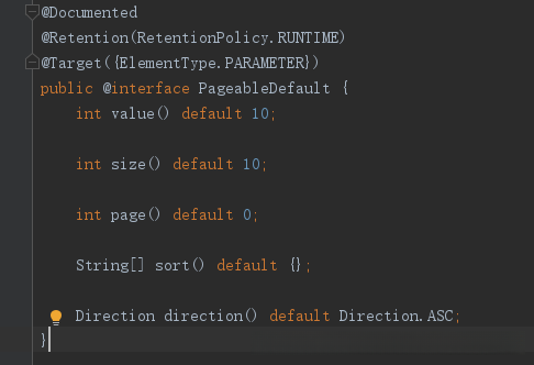 @PageableDefault注解,可以看到都有默认值,当然也可覆盖其参数值