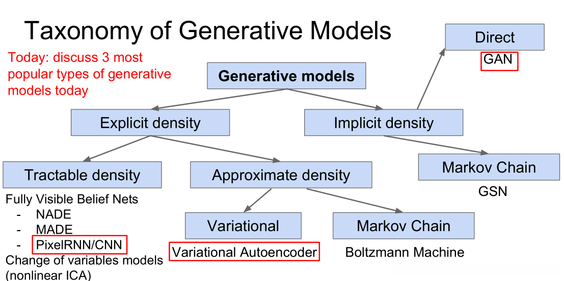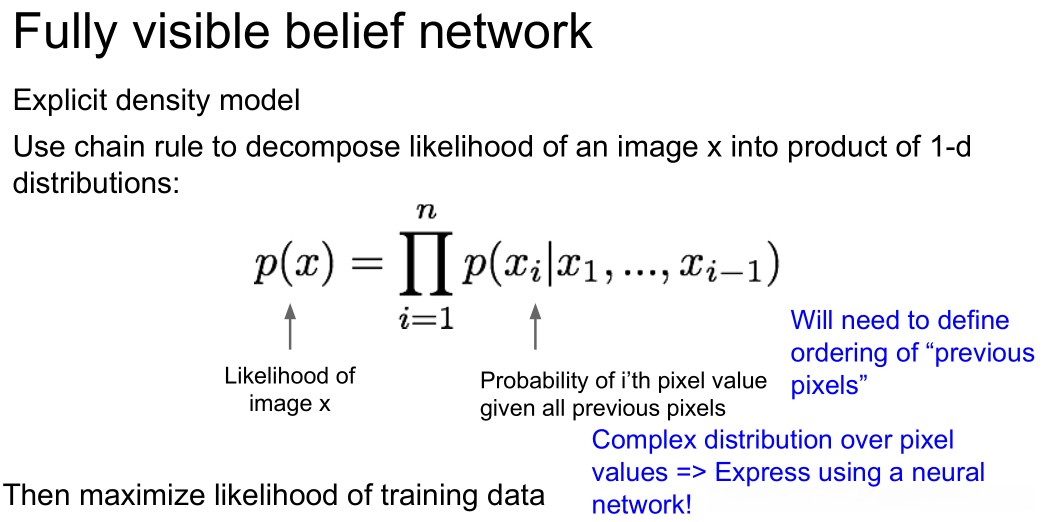 - 显式的密度估计方法需要明确定义并求解pmodel(x)。