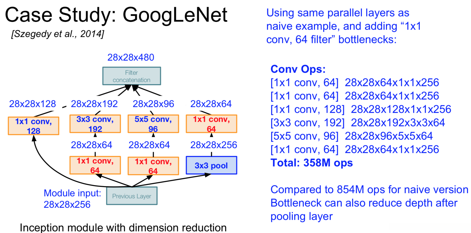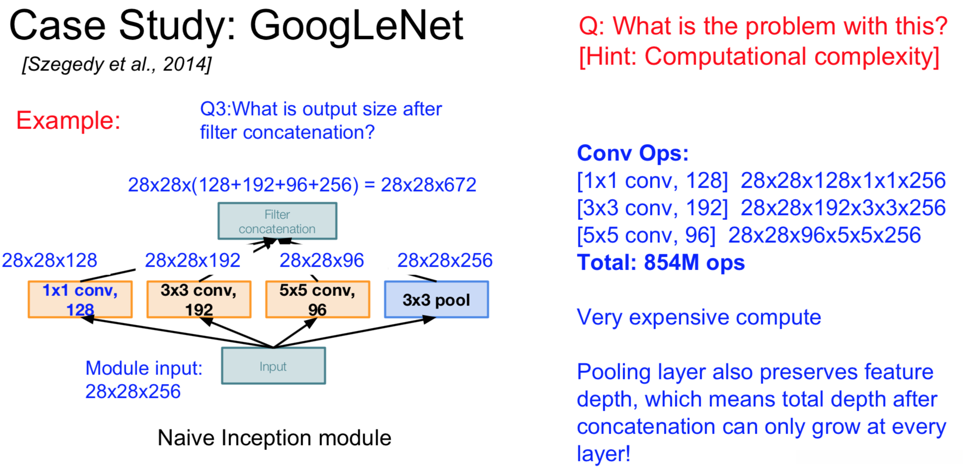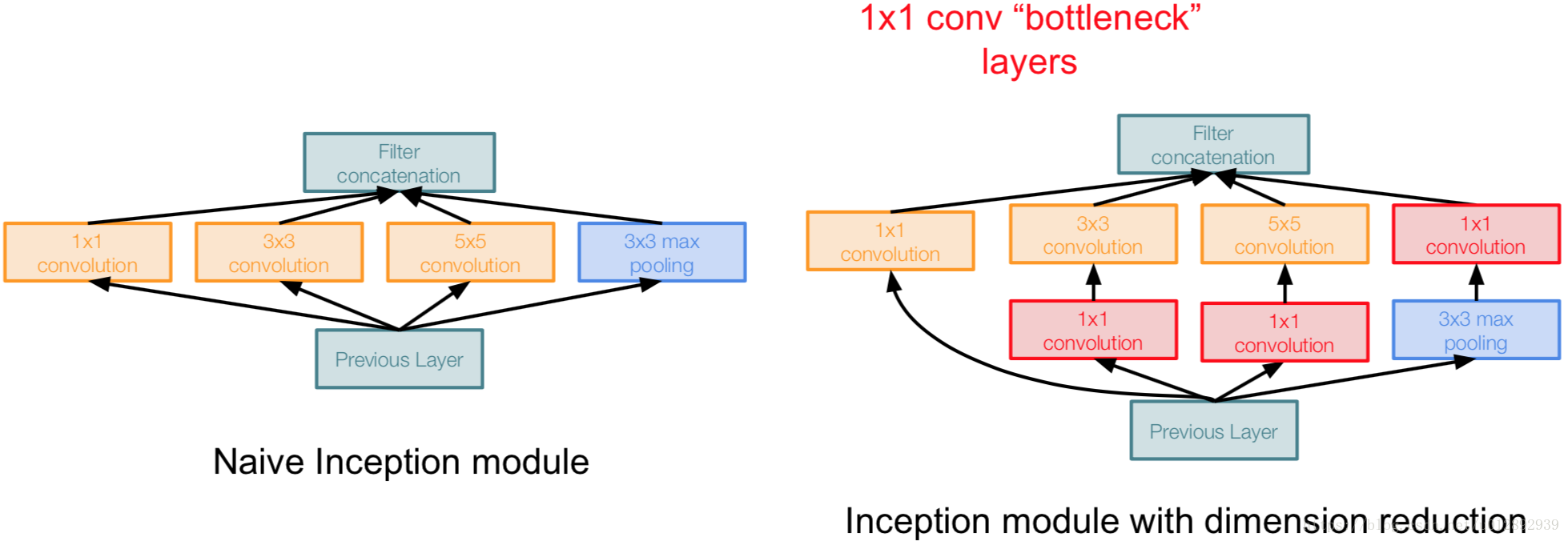 Naive Inception module: 原始的inception module 计算复杂度太高