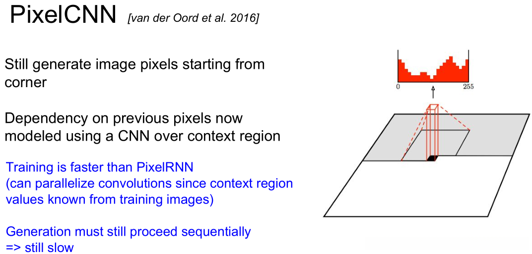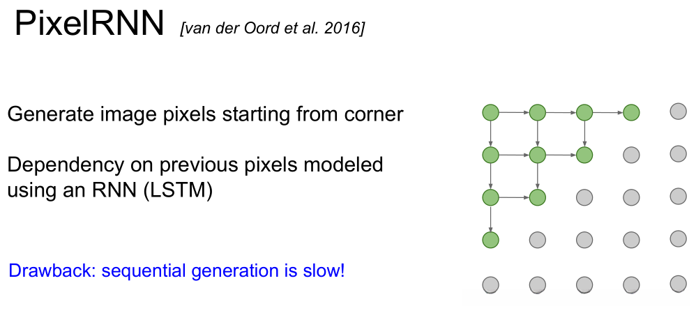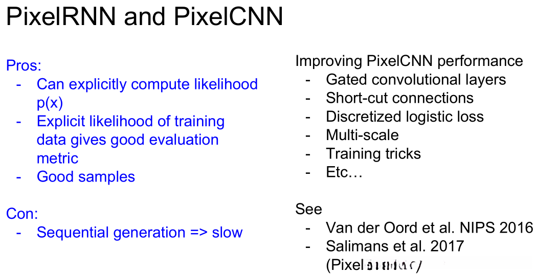 - pixelRNN/CNN 实现了对概率密度函数的直接计算,