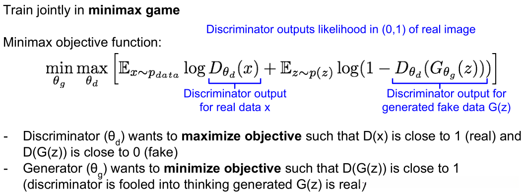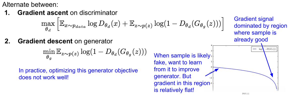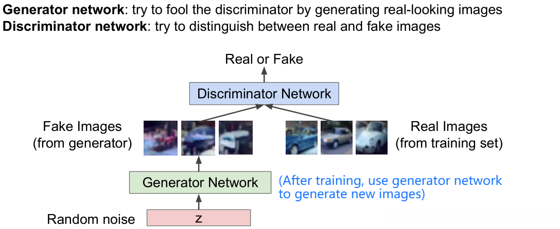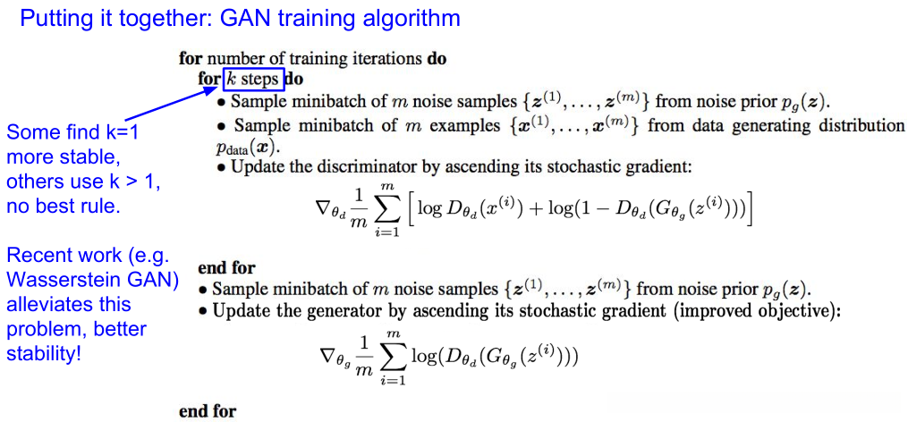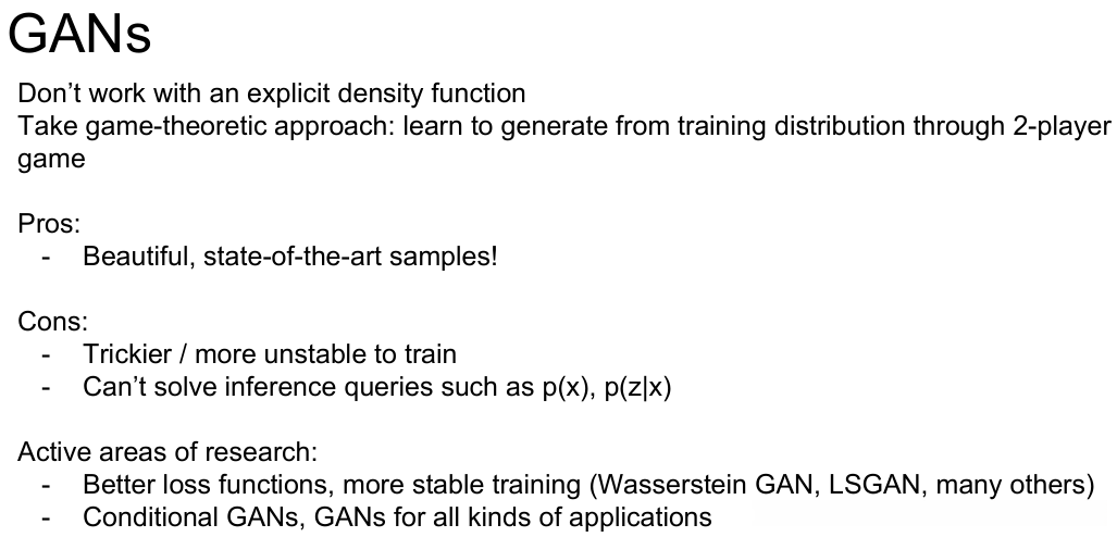 Aside: 同时训练两个网络是一项具有挑战性的任务, 可能会导致不稳定现象出现. 选择那些拥有更优损失函数设计的目标能够提高训练效果, 并已成为当前研究的热门领域.