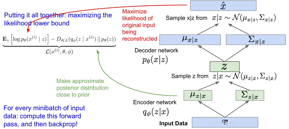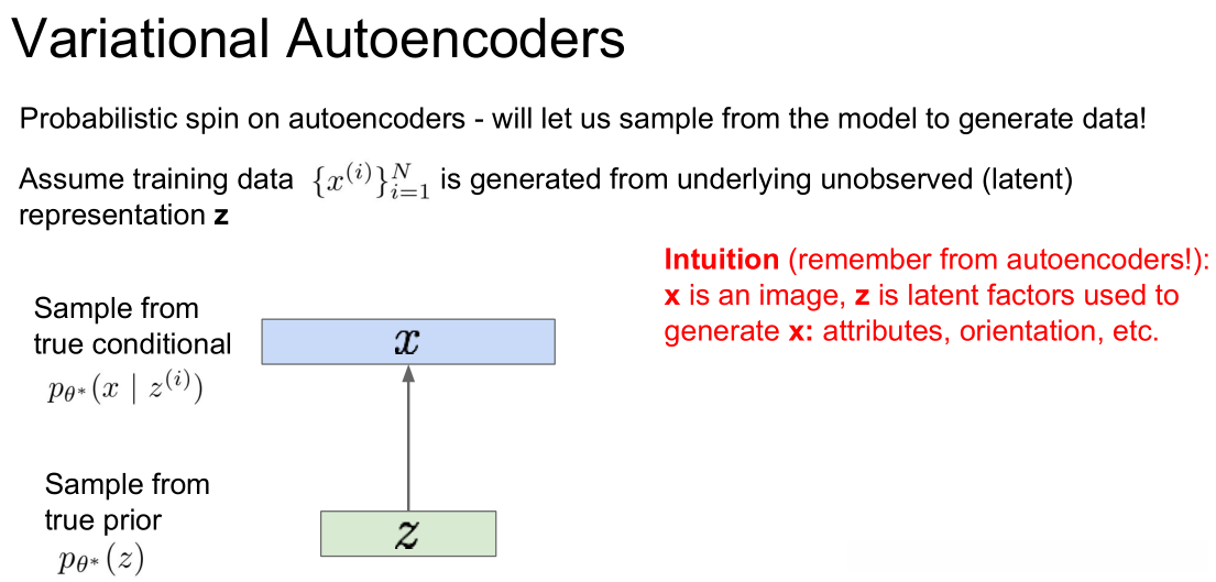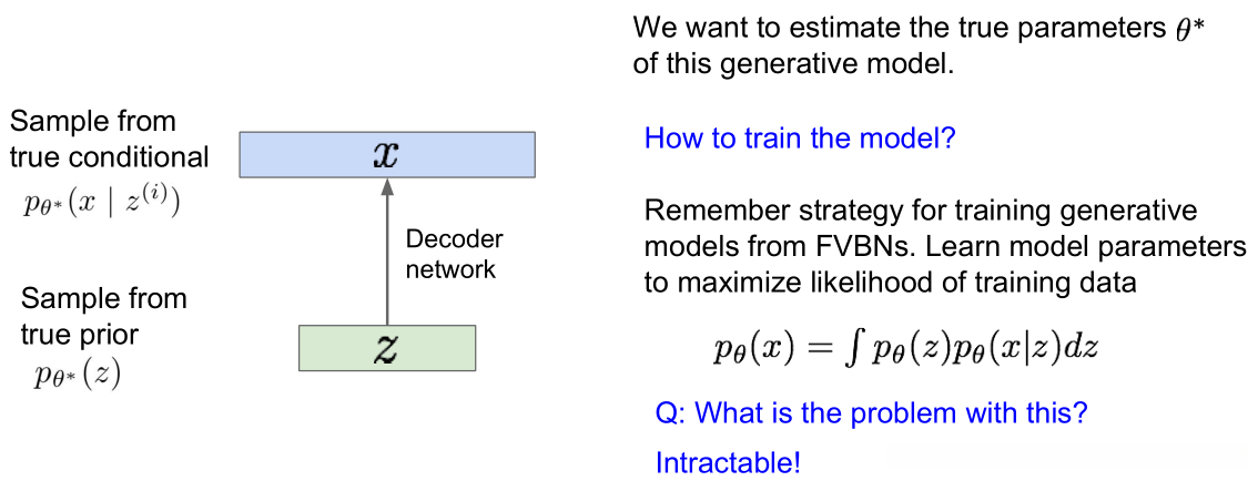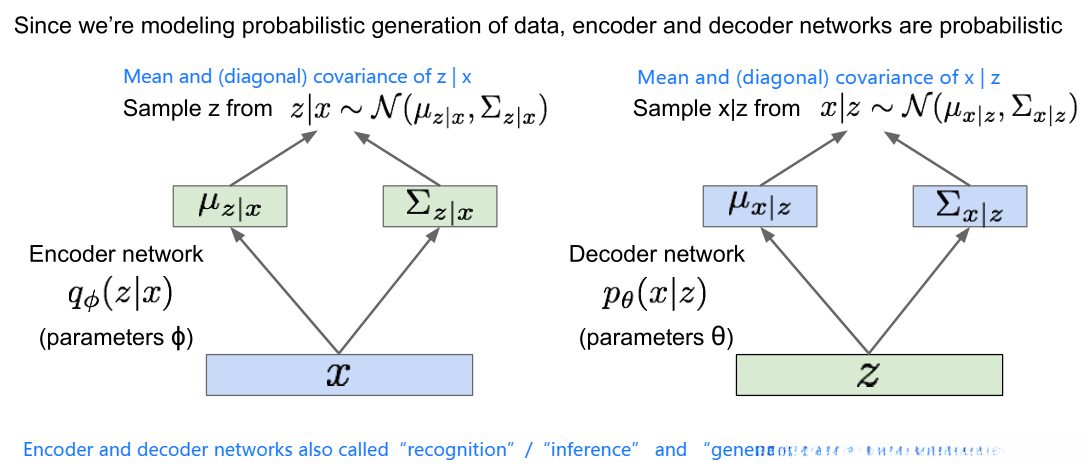 条件概率分布p(x|z)具有高度复杂性,并且能够生成图像;因此,我们将其表示为神经网络的形式。