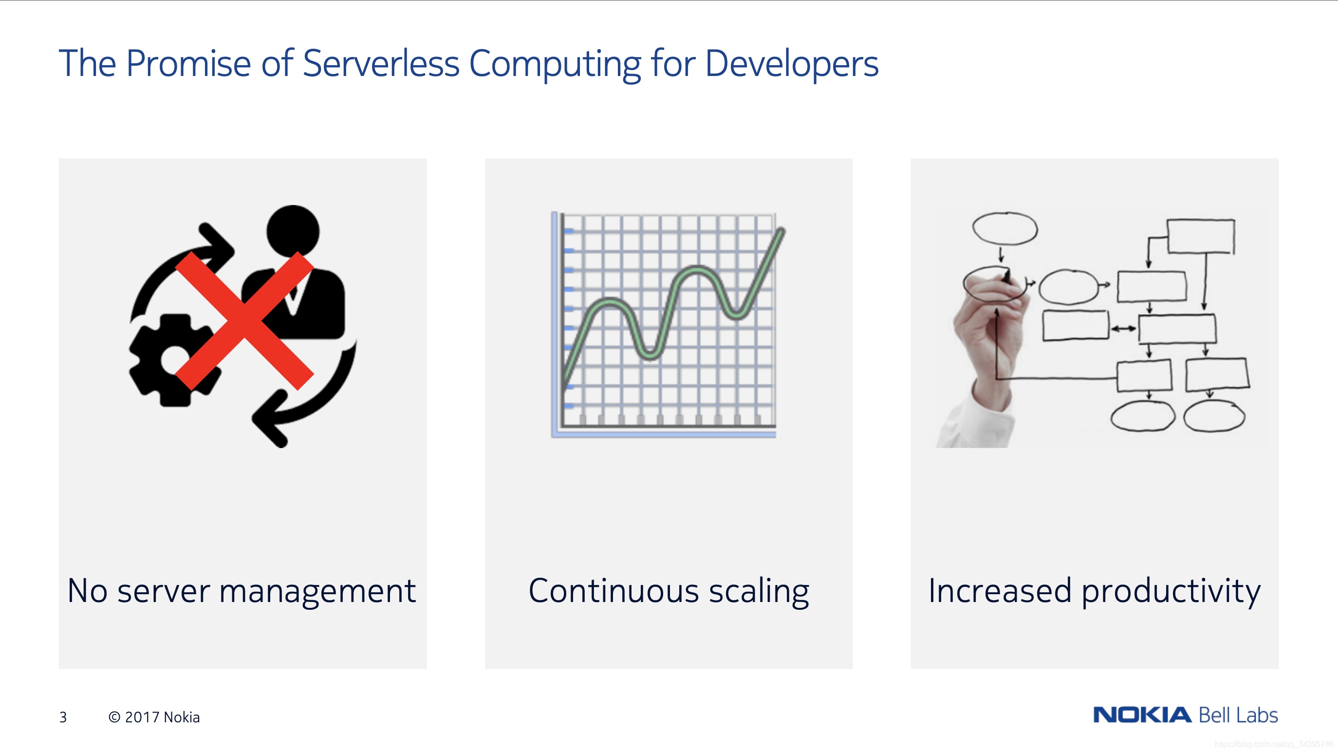 这种计算模式带来了诸多优势。首先,在使用该模式时无需操心后端服务器、程序依赖以及操作系统的管理等问题。通过这种方式可以充分享受云平台提供的弹性扩展的服务能力。此外,在这种模式下由于开发者能够专注于代码逻辑而非运维工作本身因此能够显著提升生产效率。综上所述,在开发者眼中Serverless Computing无疑是一种非常理想的选择。