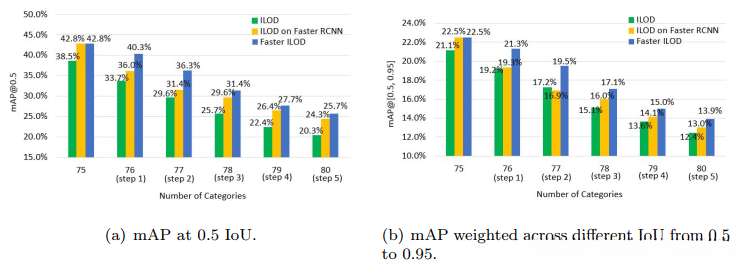 用和IOLD(Fast RCNN)同样的训练策略,用于Faster RCNN,发现在旧类标注缺失 的设定下,Faster RCNN的性能没有太大恶化(见实验部分)。