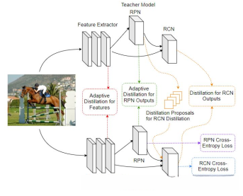 此处多网络指特征提取器,RPN,RCN,为他们的输出应用蒸馏损失。