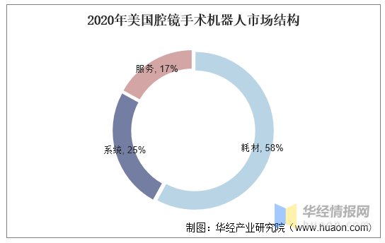 以手术机器人最成熟的腔镜和关节领域看,耗材+系统+服务是主要的收入来源。在2020年美国腔镜手术机器人市场中,耗材占比最高,为58%,系统占比25%,服务占比17%。