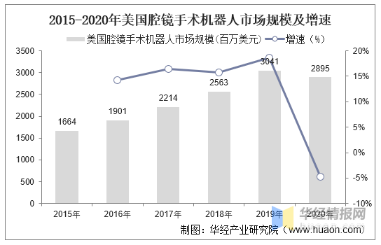 2015-2020年美国腔镜手术机器人市场规模及增速
