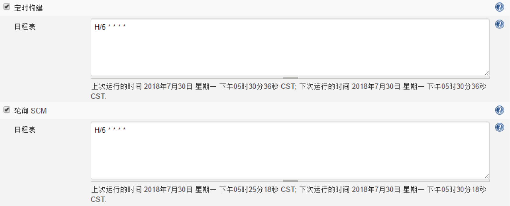 "0 8-17/2 * * 1-5"周一到周五,8点~17点,两小时构建一次