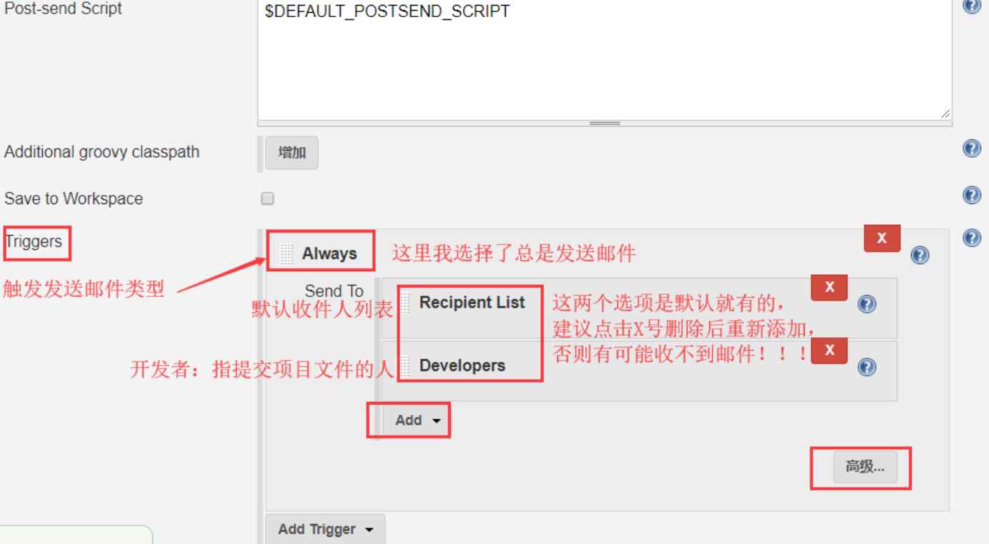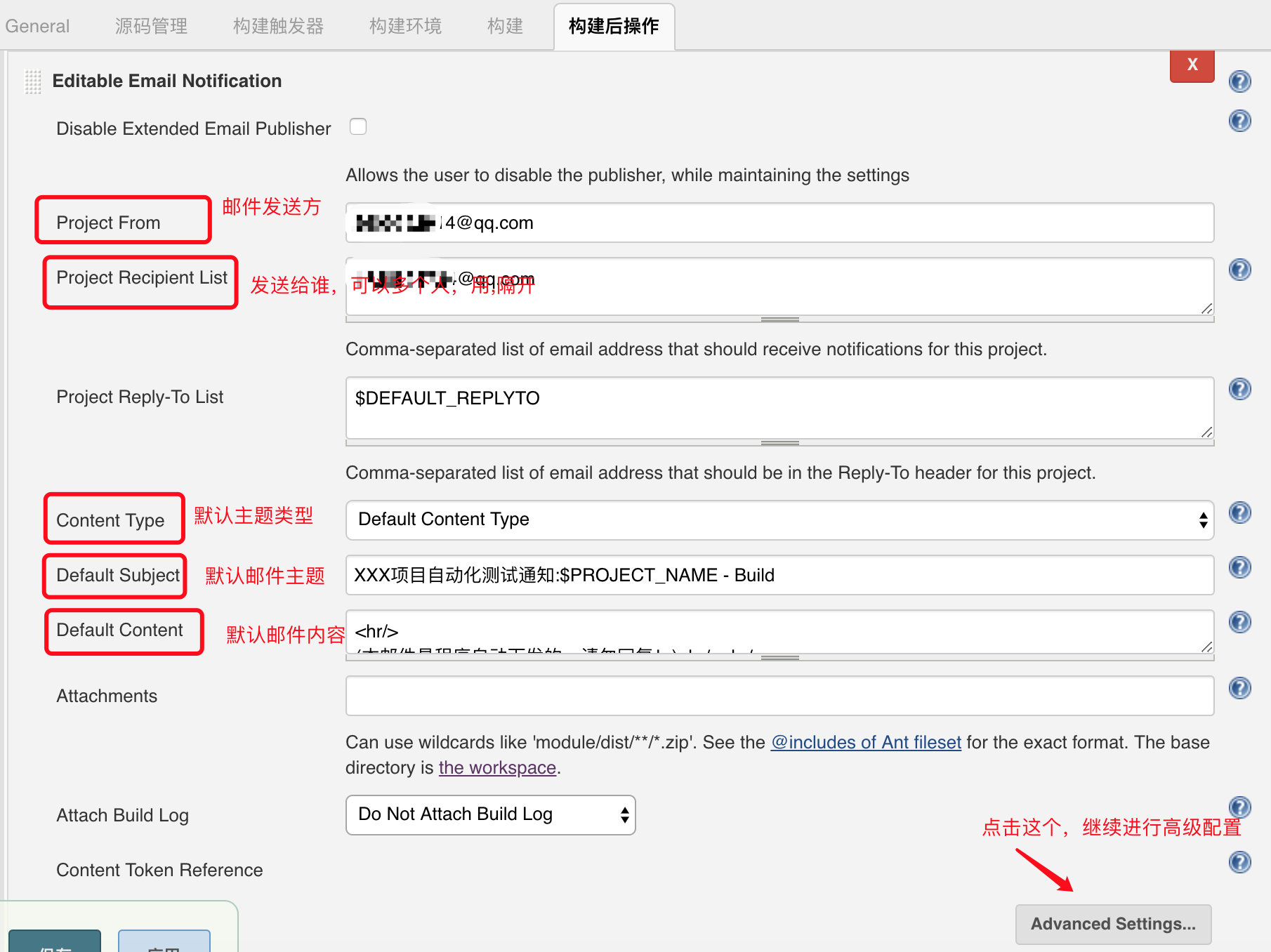 Project Recipient List:这个项目的需要发送邮件给哪些人,可以在这里输入多个邮箱,中间以英文逗号隔开