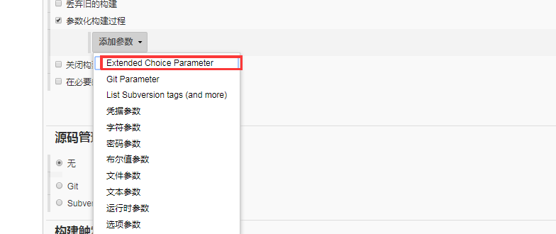 这是一个参数构建扩展,可以在构建的时候选择git的某一个分支来构建服务。