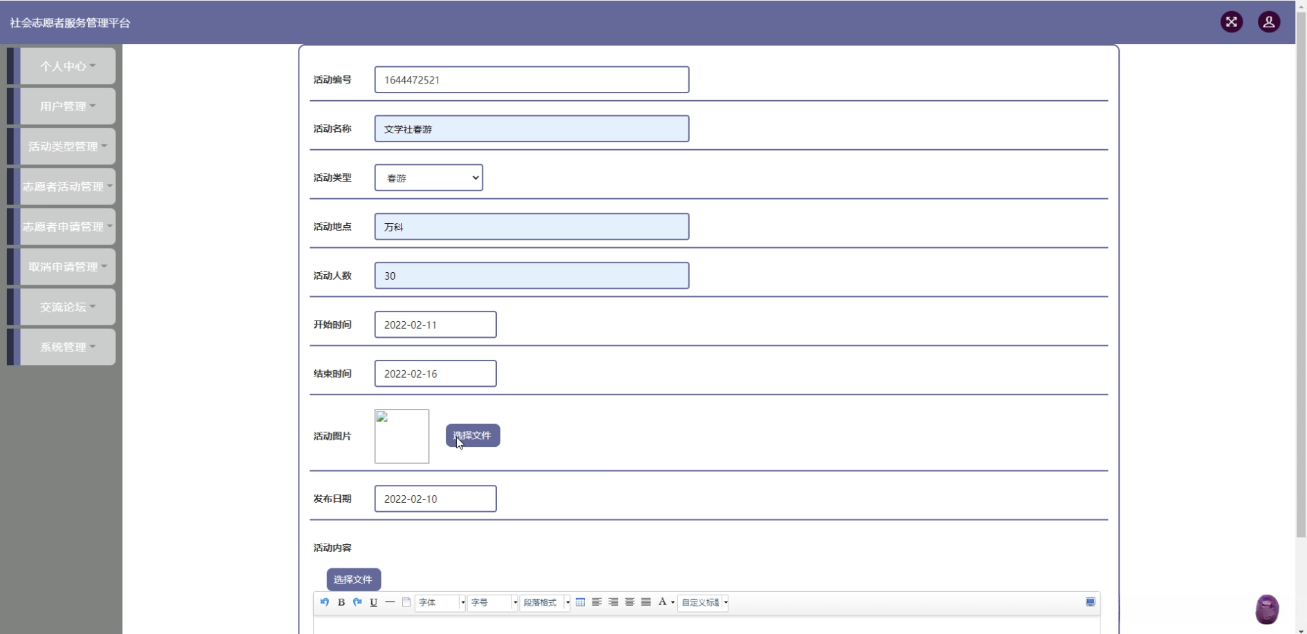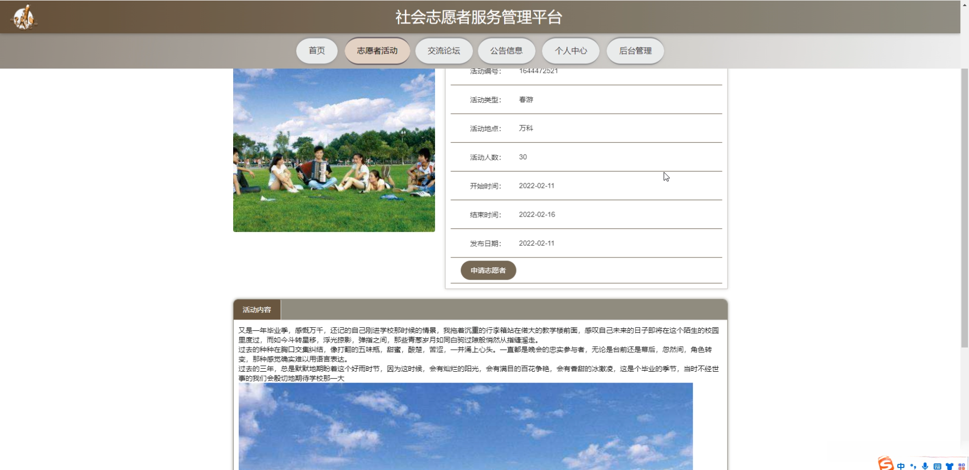 本项目旨在开发一个高性能的社会志愿者服务管理平台,并通过提升用户体验促进志愿服务事业的发展