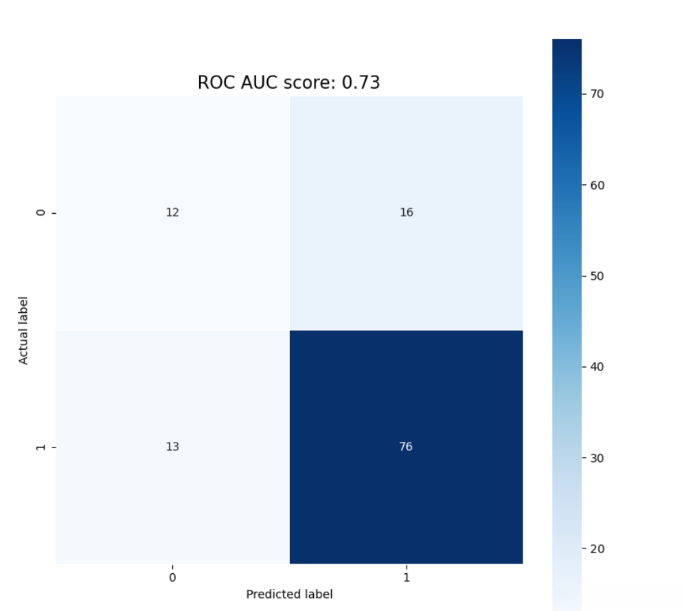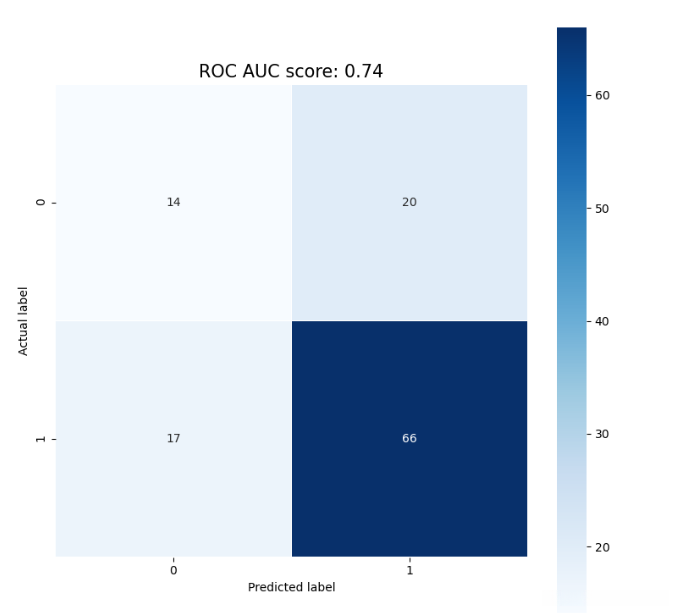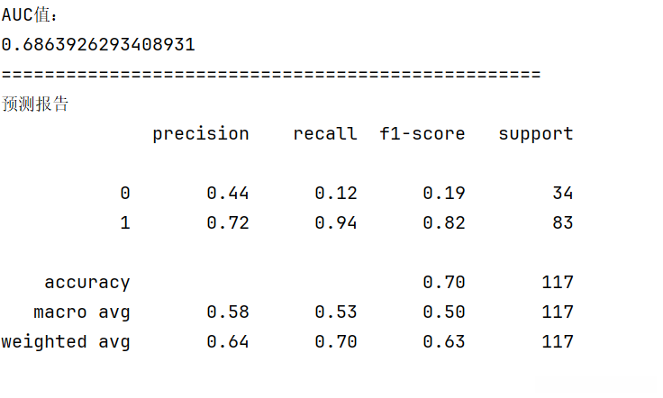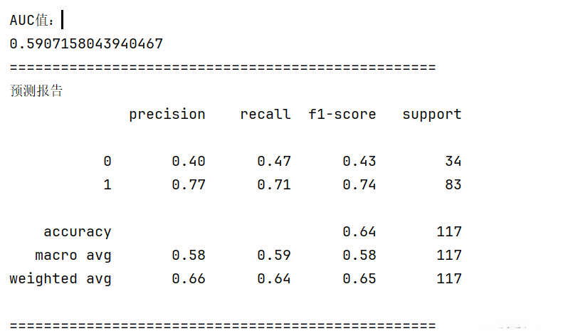 计算AUC值,打印分类预测报告并画出混淆矩阵: