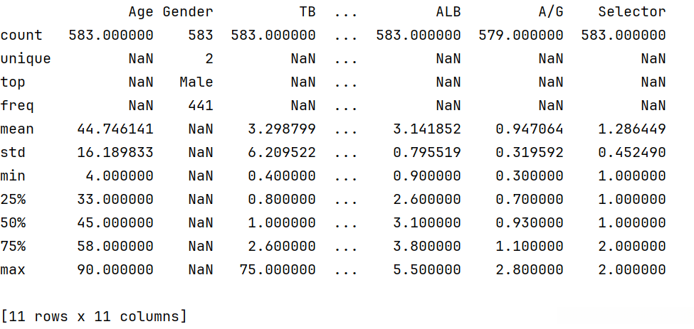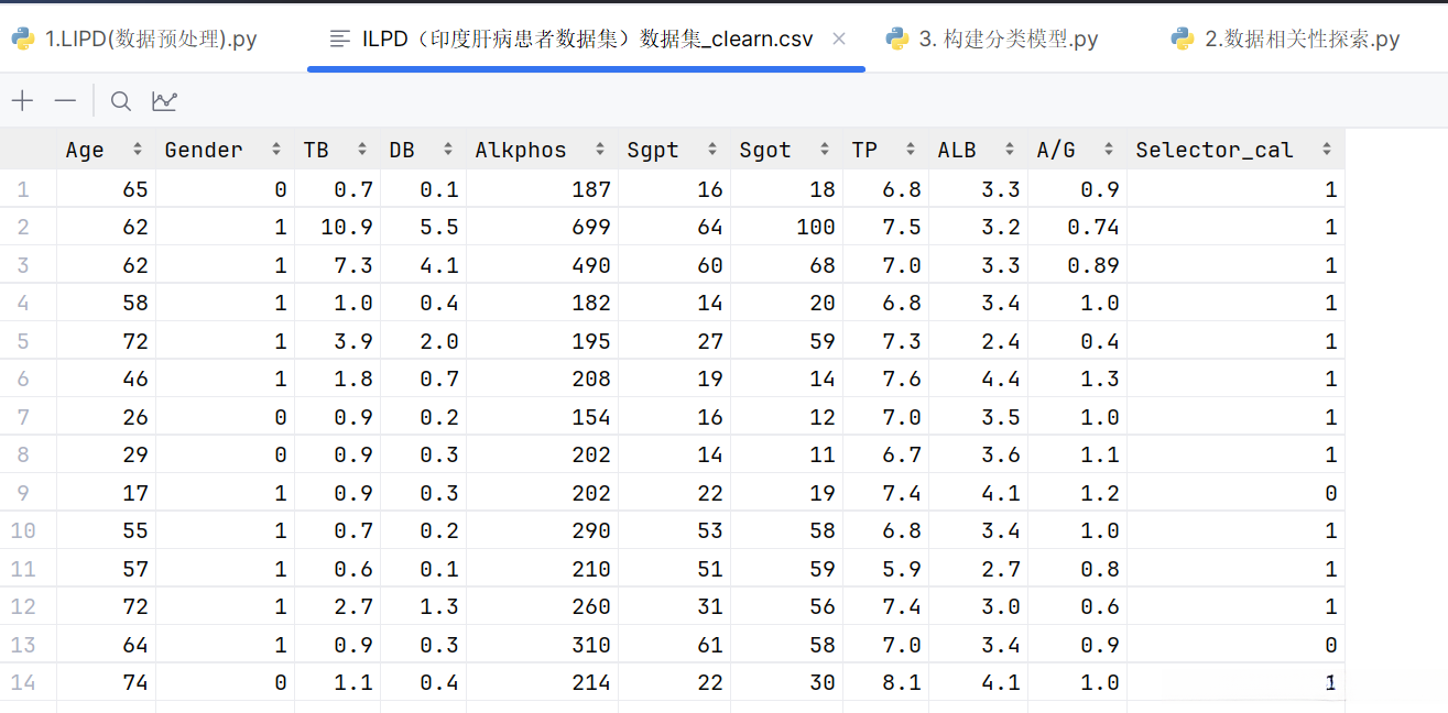 data.to_csv("ILPD(印度肝病患者数据集)数据集_clearn.csv",index=False,encoding="utf-8")