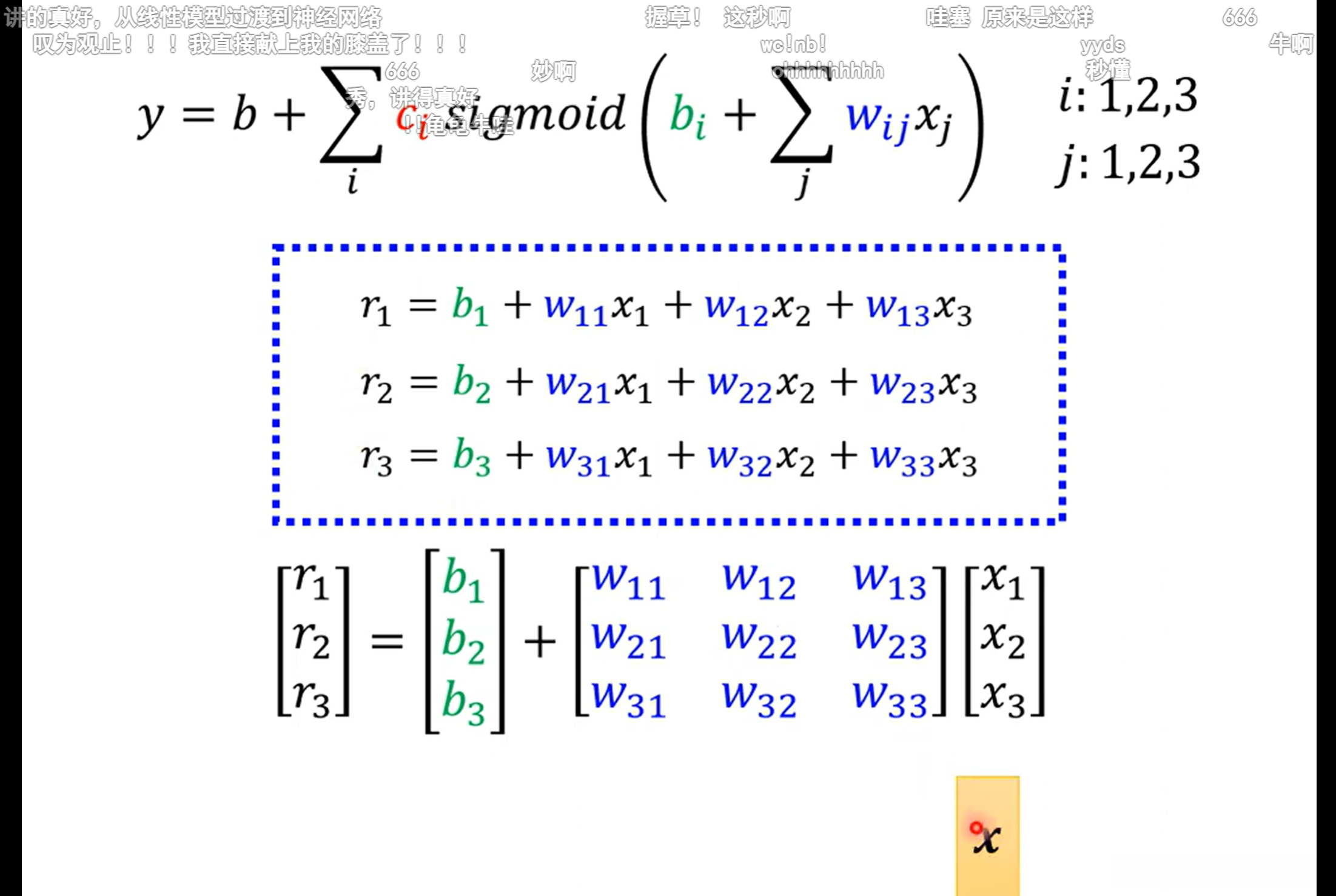 为了更好地理解神经网络中的权重连接关系这一概念,在讲解时我们可以采用线性代数的方法来进行阐述。考虑到i与j之间的关系是否就是涉及到权重连接?