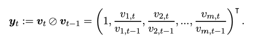 vt represents the opening prices during Period t + 1 and also the closing prices during Period t.