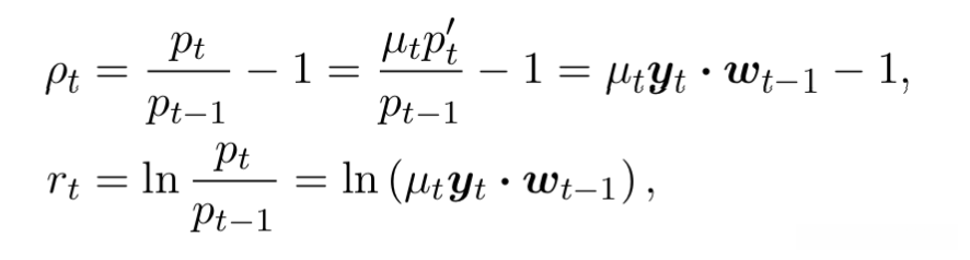 When pt−1 represents the portfolio value at Period t's beginning, without transaction costs considered, wt−1 denotes the portfolio weight vector.