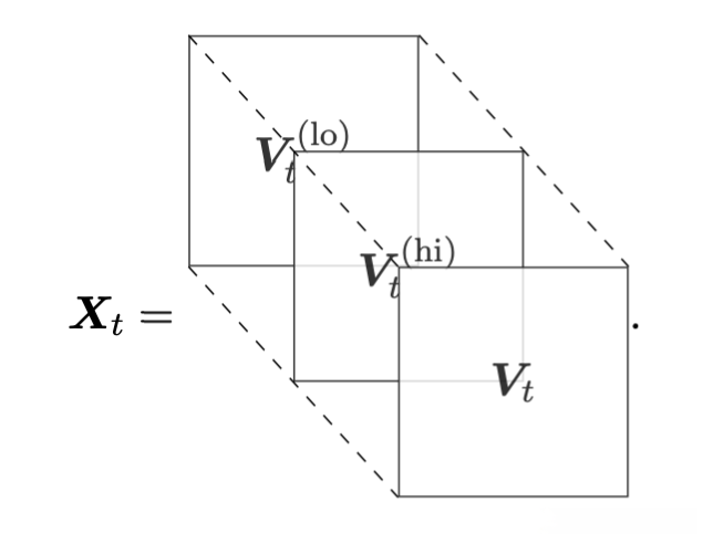 在时间t期间, 资产的特征由收盘价. 最高价与最低价构成. 由于价格的变化决定了资产组合管理的表现, 则需对所有特征的价格进行标准化处理; 从而获得综合指数X_t.