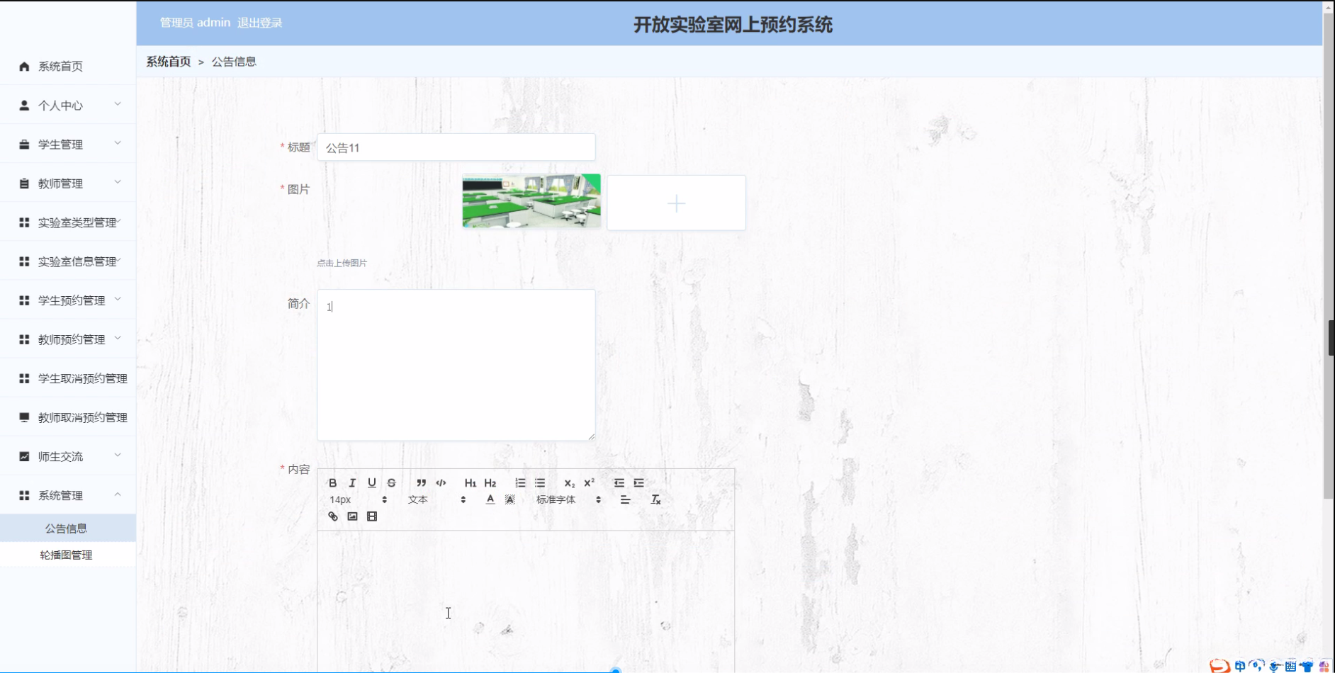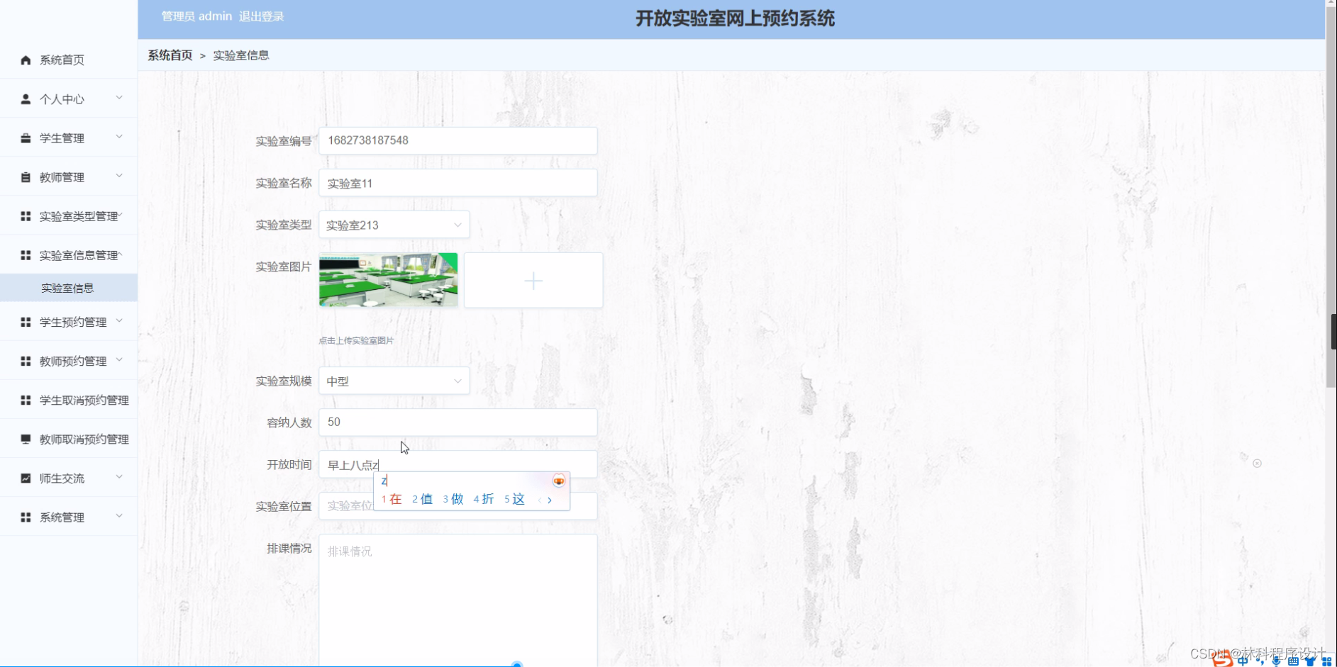 2 提供学生相关的管理系统教师相关的管理系统实验信息相关的管理系统学生预约管理系统教师预约管理系统以及实验室类型管理系统;