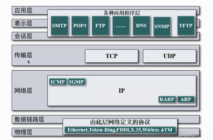 下四层,负责数据的传递和转发;--->下四层被称为数据流层