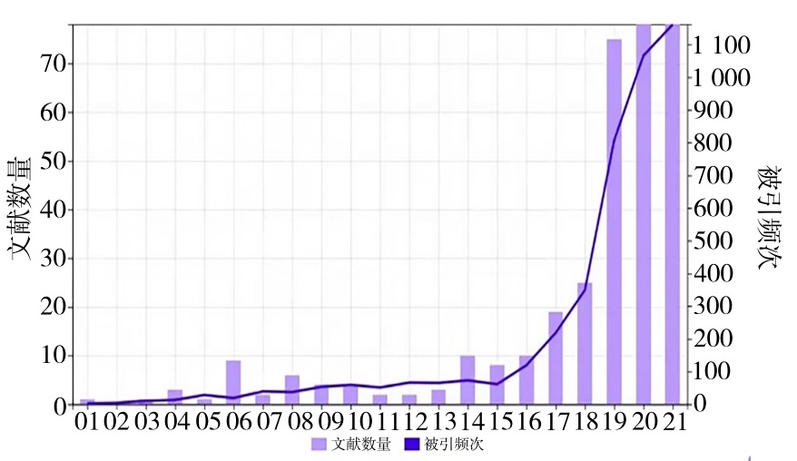 如图1所示,在2000至2021年间,发表数量与被引频次呈现持续增长态势。期间呈现缓慢上升态势的文献数量直至2013年才逐渐引起学界足够的关注。伴随着人工智能、大数据等技术的快速发展背景之下,在经历了技术发展的快速增长阶段后(特别是在经历了技术发展的快速增长阶段之后),伦理挑战带来了更为严峻的伦理挑战。值得注意的是,在经历了技术发展的快速增长阶段后(特别是在经历了技术发展的快速提升阶段之后),其被引频次呈现阶梯性放大趋势。显著增加的数据量尤其体现在近年来(特别是在近年来),这不仅反映了算法技术发展带来的显著进步(尤其是在近年来),也凸显了算法偏见问题研究热度持续攀升的趋势(尤其是在近年来)。