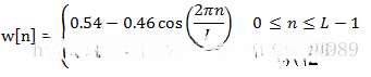 从信号sⁿ中提取一帧的过程可以表示为yⁿ=wⁿ sⁿ(注:这里可能需要更自然的表达方式)。当wⁿ是矩形窗时,在边界处切断会导致信号不连续性对傅里叶分析产生负面影响。为了改善频谱分析的效果,在MFCC中通常采用边缘逐渐降至零的汉明窗。