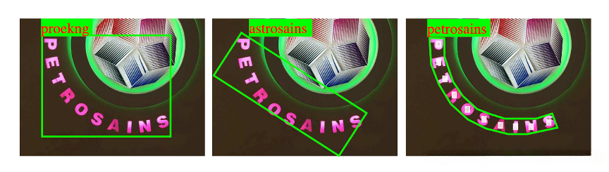 - 该模型可以识别和检测任意形状的文本,无论是水平,旋转还是弯曲