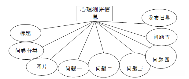 - 心理测评数据:包括标题信息(题目标签)、分门别类的调查问卷(分类表单)、图片资料(图像文件)以及五个核心问题(问题一至五),并带有发布日期字段;具体实体图示例见附图4-5