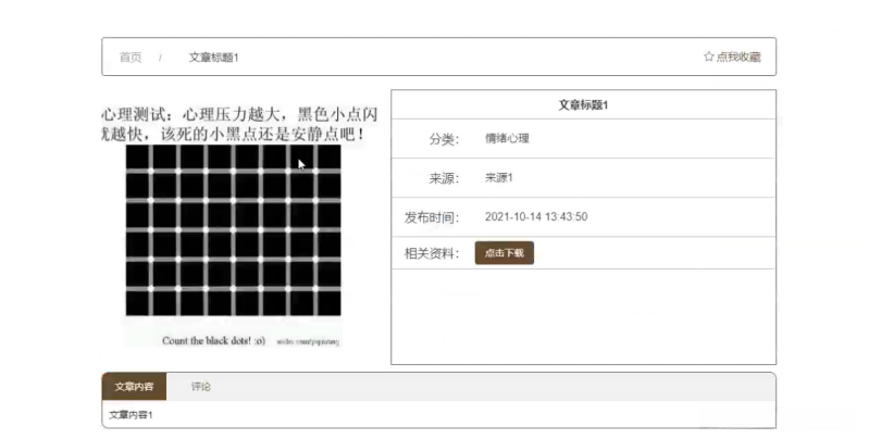 2)心理学知识信息:包括文章标题详细信息(即文章标题)、分类详细说明(即分类说明)、来源详细记录(即来源记录)、图片详细列举(即图片列举)以及与该篇文章相关的详细资料(即相关资料)、发布日期等完整时间记录(即发布时间等详细内容),以及实体图像如图4-4所示: