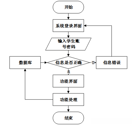 当学生打开系统并成功登录后,在界面上首先会出现登录页面,在正确输入学号及个人密码的基础上(此处指学号和个人身份认证码),系统的后台将自动对 entered information 进行验证。如果验证通过后,则会引导至功能操作界面进行相应的操作;如果验证失败,则将反馈错误提示信息并阻止进一步的操作流程(如图 3-3 所示)。