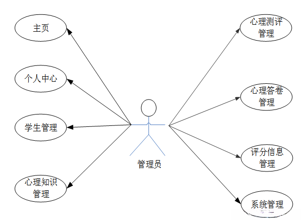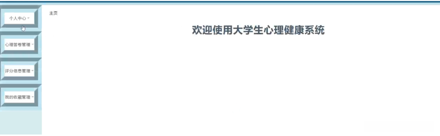 系统中的核心角色由系统管理员担任,在登录后则可通过后台功能进行操作:包括但不限于主页、个人中心等基础功能以及心理测评相关的各种管理模块。