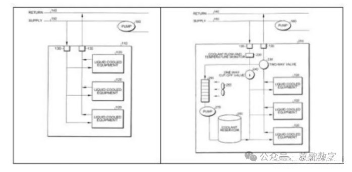 上图用于减轻数据中心的液体冷却系统的故障的系统的一个实例。给出了用于液冷计算机系统中的热缓存的系统的一个实施例的高级框图。在正常情况下,冷却液被输送到机架壳体,通过数据中心液体冷却系统供应和返回线路的多个液体冷却部件。供应管路和回流管路通过快速断开连接至机架,并泵送冷却液通过一个或多个数据中心泵穿过导管。