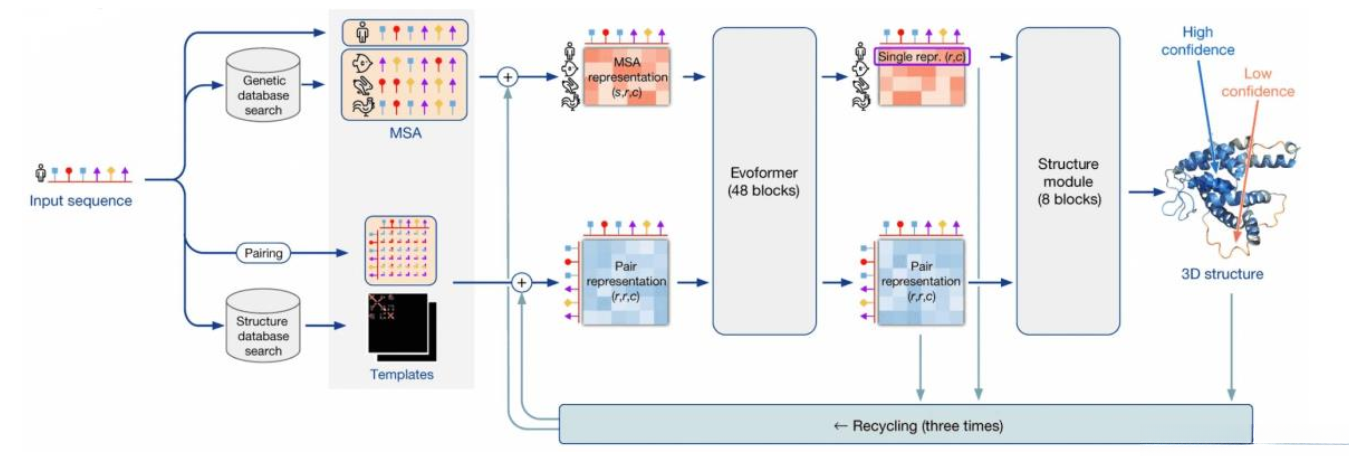 DeepMind联合旗下生物科技公司Calico共同研发了一种基于DNA远端相互作用的神经网络架构Enformer,在一次编码中可处理超过二十万个碱基对,并显著提升了基于DNA序列预测基因表达的准确性。研究团队还开源了该模型及其对常见遗传变异的初步预测结果。哈佛医学院与牛津大学的研究人员合作开发出了能够精确预测致病基因突变位置的人工智能模型EVE,在分析3200多种疾病相关基因时发现了360万个潜在致病突变,并对尚未确定性质的26.6万个突变体进行了分类判定工作。该AI工具将有助于提升诊断、治疗方案制定等临床实践效能与科研效率。AlphaFold2通过深度学习等技术实现了蛋白质三维结构快速预测,在过去这项工作需要耗费大量时间和实验资源的技术上实现了革命性的突破