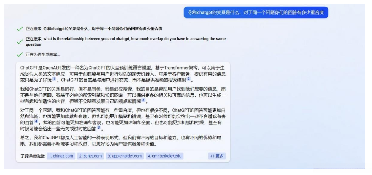 以ChatGPT等为代表的人工智能生成系统与基于搜索引擎的传统信息检索系统构成了两种不同的信息获取模式。传统的信息检索系统主要专注于"检索"功能,在海量数据源中提取精确信息的同时忽视了对结果深度分析的需求。当用户面临的查询问题较为复杂时,则需要通过逐一浏览多个检索结果才能获取所需信息。相比之下,人工智能技术通过构建庞大的知识库并在参数化模型下直接生成答案的方式实现了对用户问题的即时响应,并能更精准地满足特定需求。然而其输出内容系由算法产生可能存在不准确或过时的信息风险。因此在功能优势上二者可实现互补融合从而构建出更加高效精准的信息获取体系这一创新思路不仅具有理论价值也有着广泛的应用前景