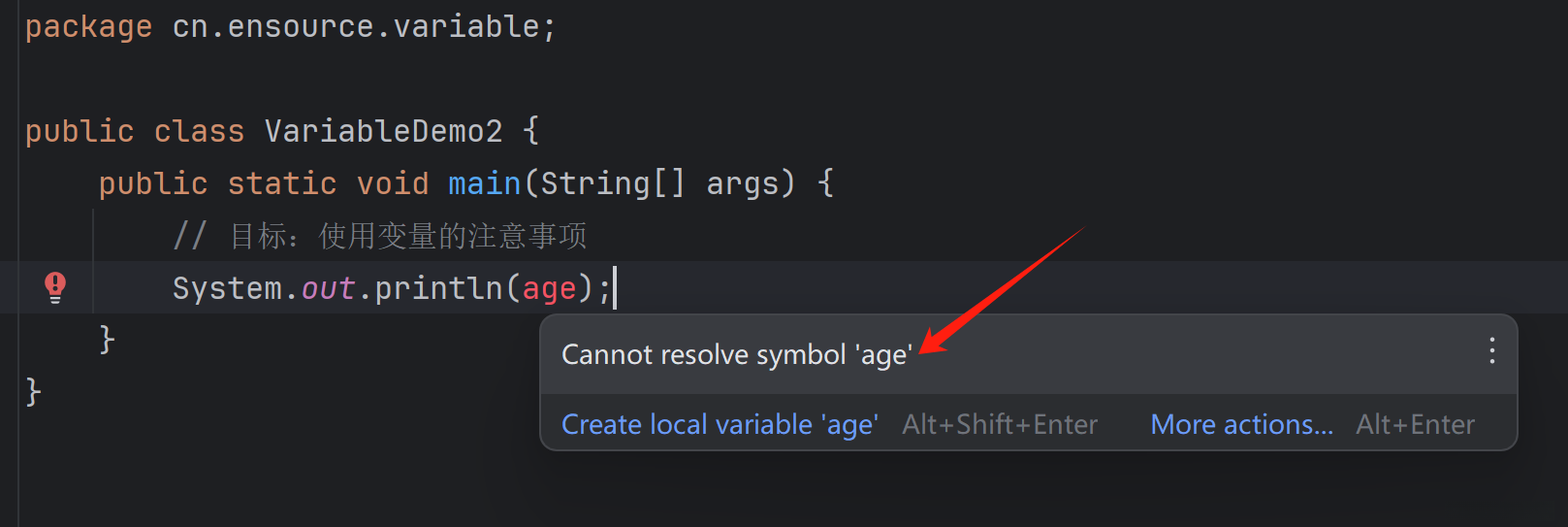 Cannot resolves symbol 'age': 不能处理age标识符的意思。