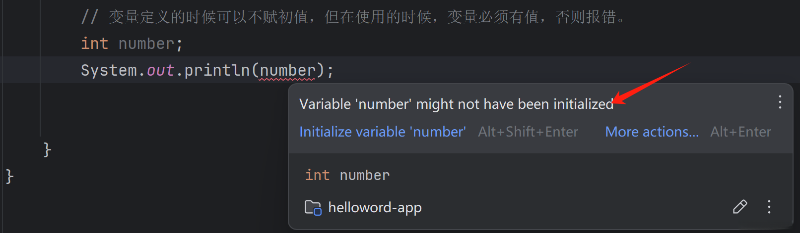 4)变量定义的时候可以不赋初值,但在使用的时候,变量必须有值,否则报错。