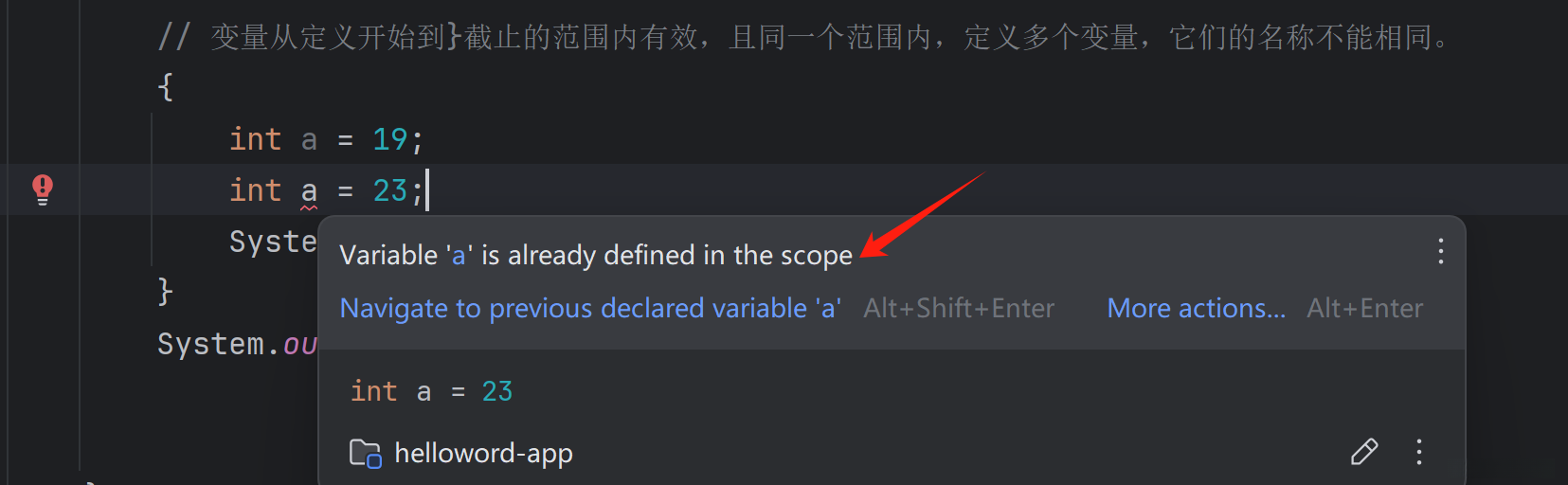 3)从定义至结束处之间的范围里有效作用着变量,并且在同一个范围内可同时定义多个变量,在这种情况下这些变量名必须互不相同