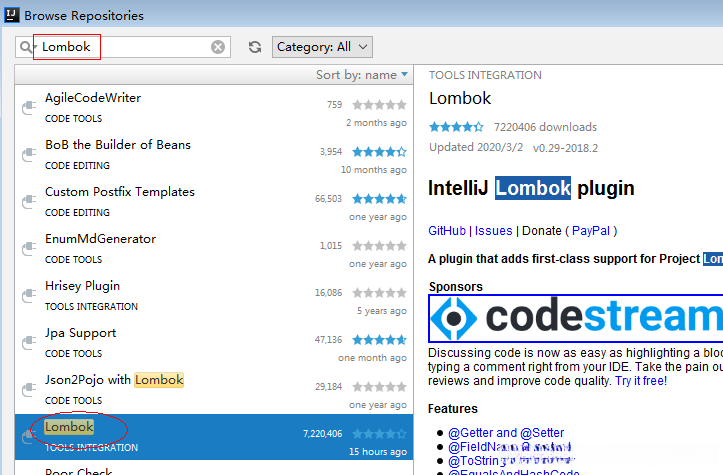 5、安装lombok插件,使得IDEA可以识别并支持lombok注解
