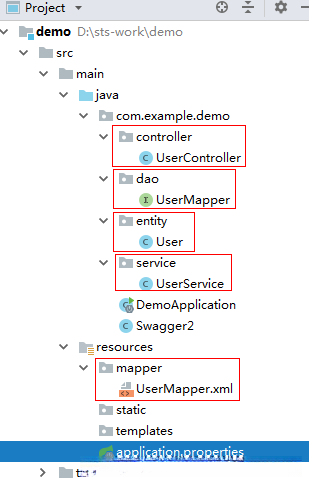 1、在对应位置建立基本结构,entity、dao、service、controller、mapper