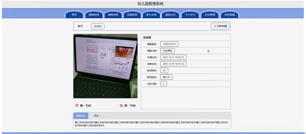 请参考下图,在线展示该园幼儿教育管理系统的界面。在系统启动后的第一个界面中(即主页),用户即可浏览各类园所信息资料库,并根据个人需求筛选出符合自身条件的幼儿园机构。当存在匹配结果时(即存在合适的幼儿园),系统将引导您进行相应的操作步骤;如未登录则系统将提示需重新登录才可执行相关操作。此外,请留意最新发布的相关公告消息,在线查看最新动态内容,并据此调整个人参与系统的相关事务安排。最后,请根据您对获取的信息满意度来进行后续的操作选择与流程执行